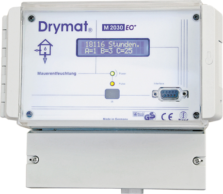 Eine zuverlässige Art der Mauerentfeuchtung ist das elektrophysikalische Verfahren Drymat® M2030 EO .Es sorgt schnell und effektiv für eine gleichmäßige Trocknung und Entsalzung. Dadurch kann die Bausubstanz der unterschiedlichsten Gebäude langfristig geschont und erhalten bleiben. Drymat® M2030 EO besitzt eine kompakte Bauform. Eine kleine, robuste Einheit bildet das Steuersystem. Das durch ein Industriegehäuse geschützte Steuergerät erfüllt höchste technische Schutznormen und kann selbst in medizinischen Einrichtungen bedenkenlos eingesetzt werden. Wichtig für trockene Wände sind auch die hochwertigen Wandelektroden welche in Stab- Kabel oder Flächenform angeboten werden. Sie bilden zusammen mit dem Steuergerät die Trocknungseinheit und lassen schon relativ kurz nach dem Einsatz die ersten Ergebnisse erkennen und messen.